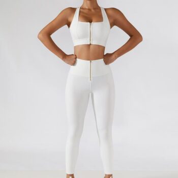 2-Piece Women’s Yoga Set: High-Waist Leggings & Front-Zipper Crop Top